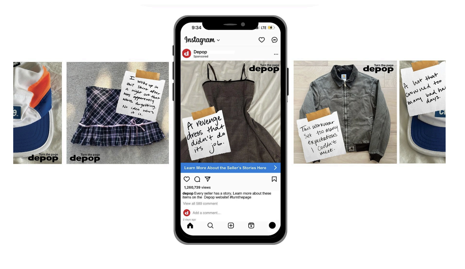 Take over Depop’s website and allow sellers to replace clothing descriptions with the stories behind their clothing.