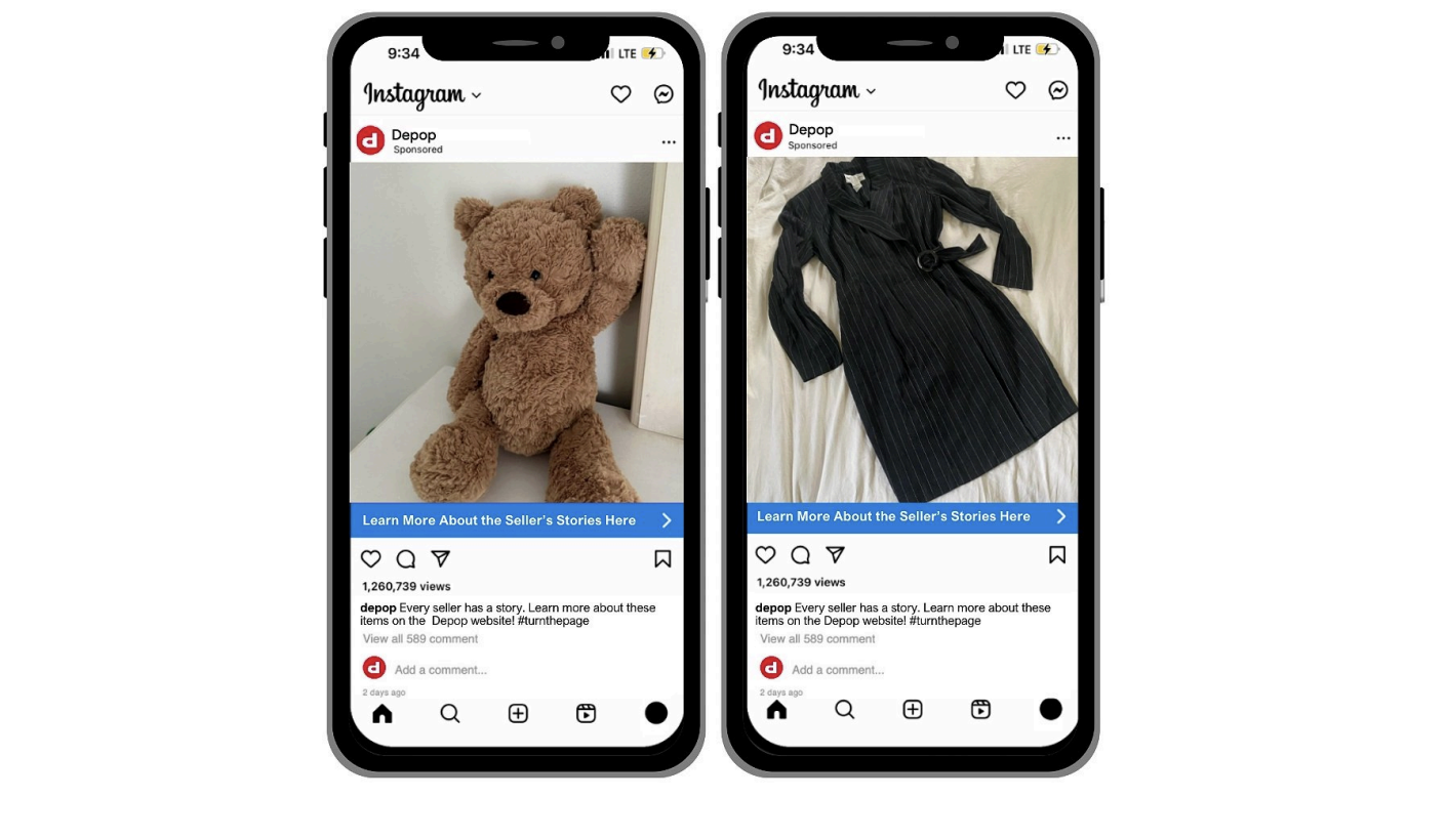 Kick off Depop's social media buzz with sponsored posts on platforms like Instagram, featuring sellers showcasing items and sharing the story behind them.